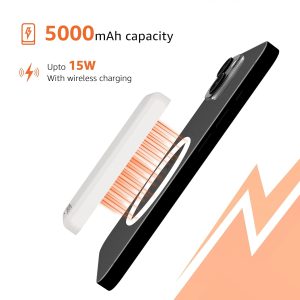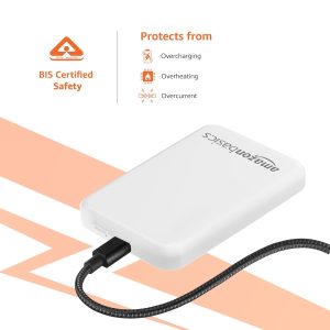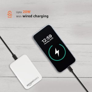 Stay connected and powered up with the Amazon Basics 5000mAh Li-Polymer Fast Charging Power Bank. This sleek and sturdy power bank is designed to deliver two-way fast charging. The 20W wired charge iPhone 12 is compatible with most devices and is capable of charging an iPhone 14 from 0-50% in just 30 mins. The 15W Magsafe wireless chain above delivers 1.2x faster charging than the Magsafe Apple Battery Pack. The lightweight, compact body makes it easy to carry this power bank wherever you go.